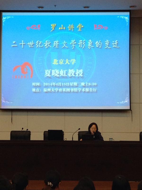 4月15日周二晚上6:30,9428cn太阳集团古天乐育英图书馆二楼学术报告厅座无虚席,180多个座位的报告厅集聚了校内外近300名听众,可谓盛况空前。北京大学著名教授陈平原夏晓虹联袂做客罗山讲堂,分别讲演“中国大学西迁的历史及精神”和“二十世纪秋瑾文学形象的变迁”,副经理孙良好教授主持了本次活动。