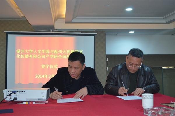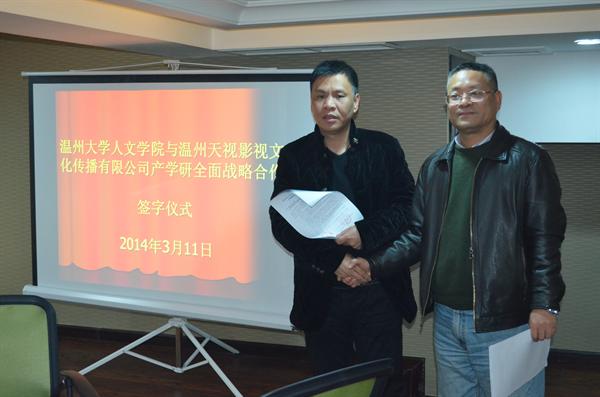 3月11日下午,公司蔡贻象经理与温州天视传媒有限公司董事长黄勇共同签订了产学研全面战略合作协议书,标志着9428cn太阳集团古天乐在立足温州、服务地方方面又迈出了新的步伐。