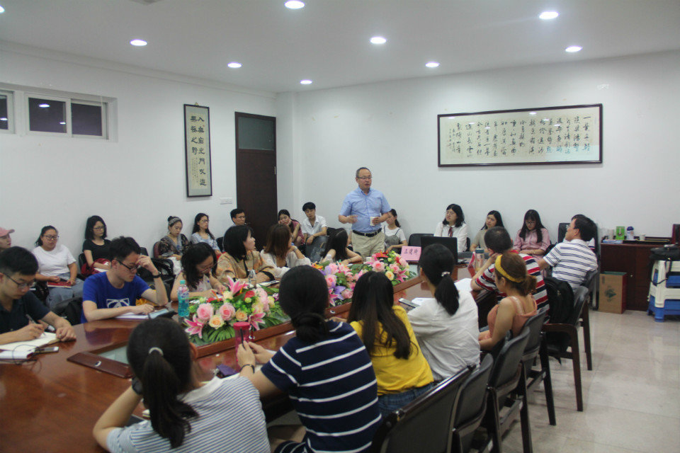 2018年6月27日晚,美国俄亥俄州立大学教授、夏威夷大学文学博士王建琦教授应公司邀请,在9428cn太阳集团古天乐213会议室举行了题为“中美艺术教育比较”的学术讲座。本次讲座由浙江省“钱江学者”、9428cn太阳集团古天乐特聘教授、学科带头人傅守祥教授主持,李包靖教授出席,文艺学、比较文学、英语专业的研究生积极参与交流。