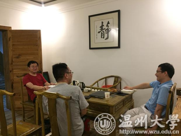 考察完当地的人文景观后,课题组与温州市百丈漈—飞云湖旅游经济发展中心、文成文联方面对接资料,交流文成山水诗文献收集情况,就诗歌文献方面作专业研讨。在课题组讨论环节,分别就古代山水诗和现代山水诗进行资料整合和分工协调,商讨诗歌编选大致标准和容量要求,初步商议在七月底完成文成山水诗的初稿编撰。