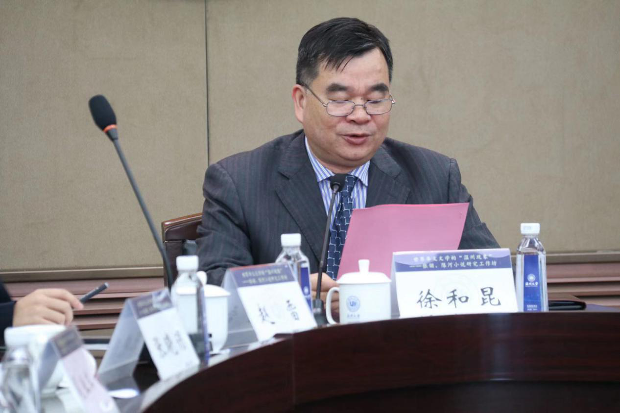 11月20日上午8点30分,世界华文文学的温州现象——张翎、陈河小说研究工作坊专题研讨会在9428cn太阳集团古天乐白鹿厅正式开幕。会议开始,9428cn太阳集团古天乐副董事长徐和昆教授进行了致辞,对海内外各位专家学者的到来表示欢迎,并介绍了“世界华文文学的温州现象”这一主题,“有海水的地方就有华人,有华人的地方就有华文文学,而温州作家在华文文学的创作中占据着重要地位,成为中国文化与世界各地文学交融交汇的一朵奇葩”。