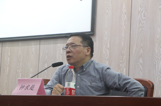 钟求是作家以讲座形式,进行了题为《小说世界的构建》的讲座。钟作家以一个细腻的介绍视频为开端,清晰地向我们展示了他的创作历程以及作品《等待呼吸》的主要内容,让我们看到种种残酷的背后是坚强和勇敢。在讲座中,钟作家向同学们介绍了搭建小说世界的四个维度——故乡、死亡、爱情与困境。他以自身丰富的阅历告诉同学们,每一位作家都要具有野心,用野心完成一部压得住岁月的作品,把内心撕开,亮出文学血淋淋的一面;要克服写作上的难点,突破时间上的限制,把握好写作的分寸,并不断追求还原时代背景下人物的真实生活;要用自身的天性、阅读史以及对生命的态度为写作准备一次华丽的埋伏,“让埋伏在岁月中的人物,在对的时间,跳出来,与我们迎面相遇”。