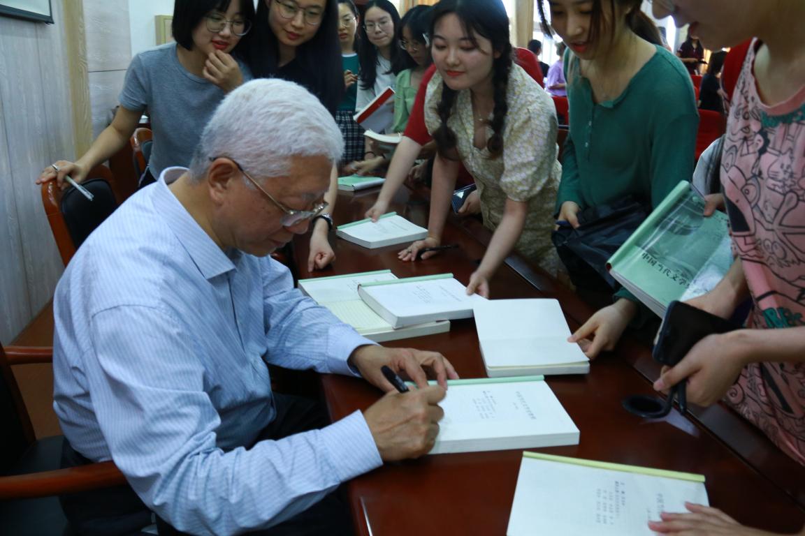 讲座提问环节,陈思和教授对同学们关于海派文学不同书写和鲁迅是否是海派作家等等提问进行了耐心的回答。评议人陈文辉副教授概述了陈思和教授的学术思想,总结了本次讲座的内容,然后以自己的上海生活现身说法,对海派文化和海派文学提出了自己理解,并对陈思和老师的到来表示了感谢。