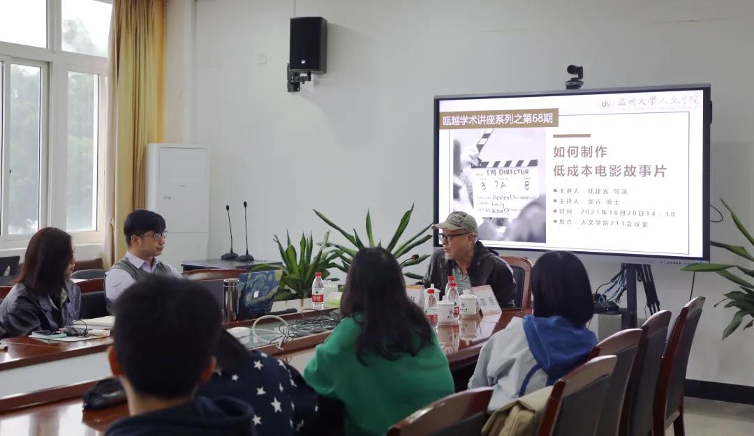 2021年10月20日下午14:30,《如何制作低成本电影故事片》在我院成功召开。此次讲座由郭垚博士主持,由浙江电视台编导、中国电影导演协会会员陆建光导演主讲。陆导在讲座中结合自己的儿童电影《亲亲鳄鱼》,分享了低成本电影从电影想法到编剧、拍摄、后期、发行等10个环节需要注意的事项,以及个人的务实经验。