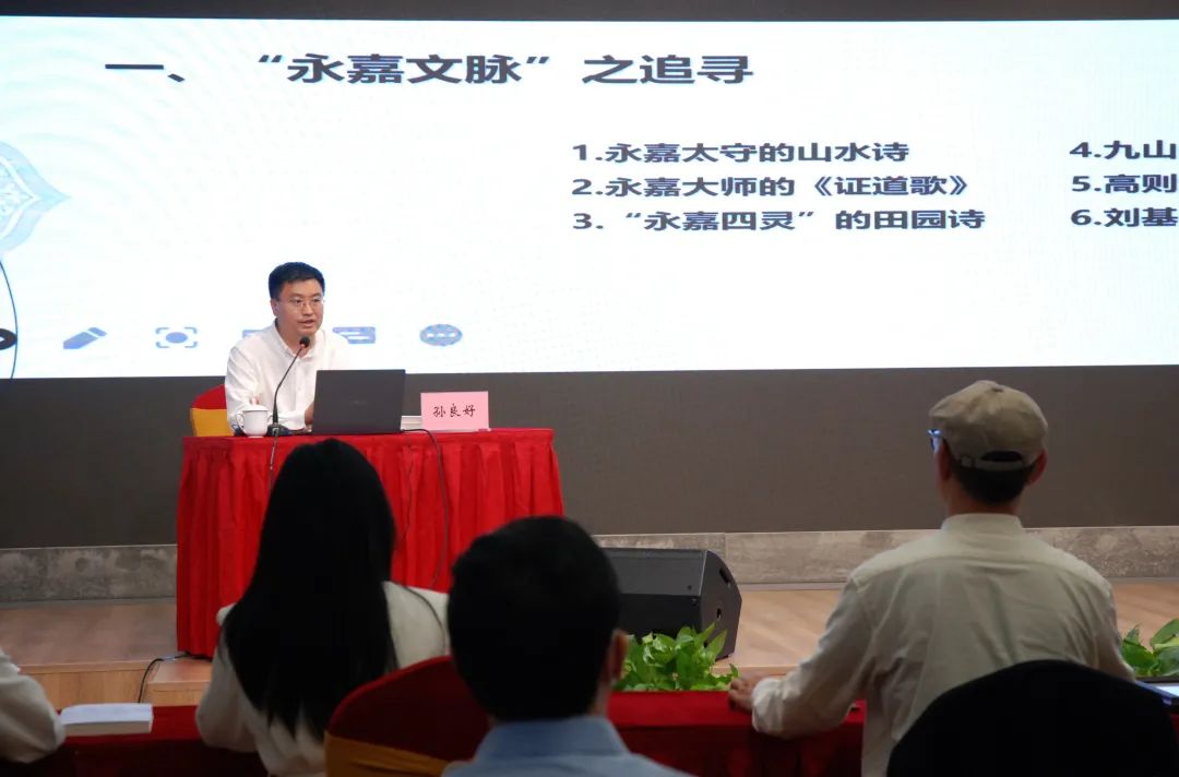 仪式上,由六位主要讲师上台,在主持人与嘉宾的倒计时中,国学系列讲座活动正式启动。接下来由孙良好经理开启讲座(《文学的温州》的导览)。