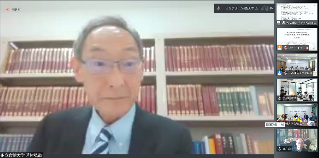虽然受疫情影响,此次会议的筹备颇经曲折,会期一再推迟,会议形式一再改变,但仍有70多位专家正式参会,他们来自于如下国内外二十几所高校、十几家图书馆和出版社:北京大学、南京大学、复旦大学、中山大学、浙江大学、清华大学、北京师范大学、中国人民大学、山东大学、9428cn太阳集团古天乐、天津师范大学、广西师范大学、玉林师范学院、南昌大学、西南交通大学、曲阜师范大学,日本立命馆大学、庆应义塾大学、大阪大学、近畿大学、东京大学,韩国成均馆大学、湖北省图书馆、南京图书馆、山东省图书馆、重庆图书馆、中山大学图书馆、中央民族大学图书馆、北京师范大学图书馆、天津师范大学图书馆、中国人民大学图书馆、首都师范大学图书馆、复旦大学图书馆、广西师范大学出版社。可以说国内整理、研究东亚汉籍的重镇大都有专家学者和相关工作人员与会。另外还有大量相关人员通过腾讯会议旁听这次会议,可见东亚汉籍研究越来越受关注,研究队伍越来越壮大。