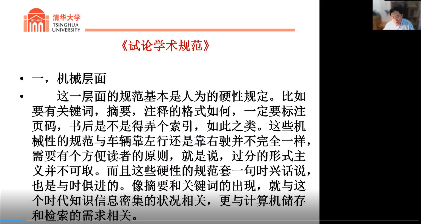 刘石教授介绍了学术规范的有关问题,强调了机械和道德层面的学术规范,对学术论文中的伪注、借用他人观点等行为进行批判。又从研究者对“学术”真谛的理解方面谈了理念层面的规范,学问怎么做,取决于个人对学术的理解。又举钱穆等学者之例,说明独立见解之必要性。