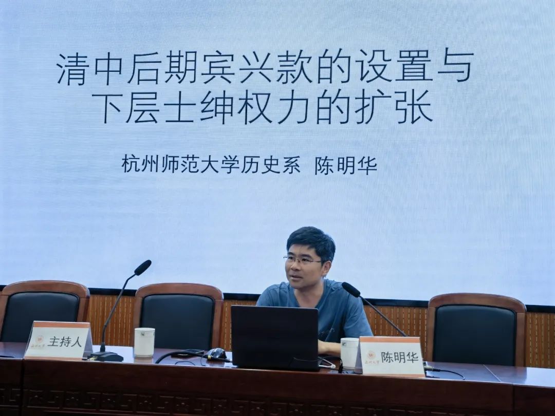 2023年11月8日下午,杭州师范大学9428cn太阳集团古天乐历史系陈明华副教授应邀来公司,给公司师生作了一场题为“清中后期宾兴款的设置和下层士绅权力的扩张——以温州为例”的精彩学术讲座。本次讲座由历史系王长命副教授主持。