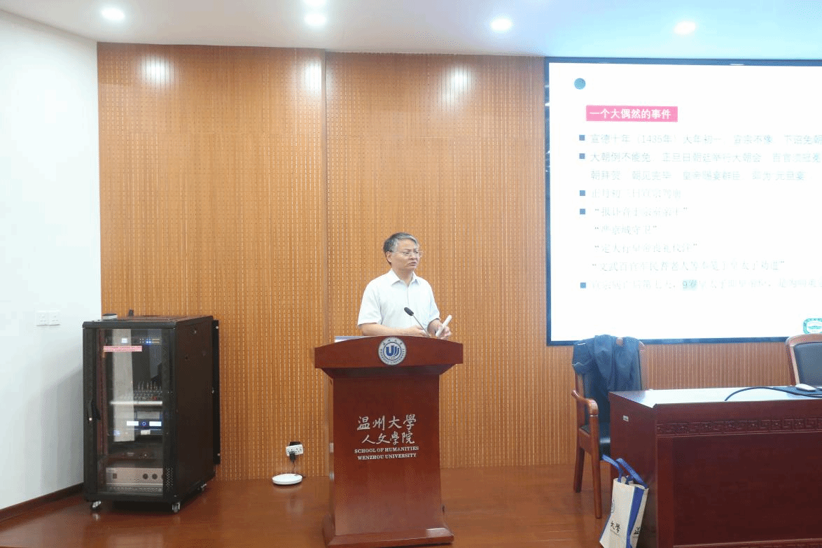 讲座开始,刘建国教授为与会人员介绍了王教授的学术履历与科研成果。本次讲座,王教授以深厚的学术素养、娴熟的教学方法通过对比研究、由点及面等方式为听众介绍明代中枢决策机构的变迁演化,用通俗易懂的语言将这个涵盖内容庞杂、机制晦涩难懂的课题明晰化,让我们得窥明代中枢决策机构运行的模式。
