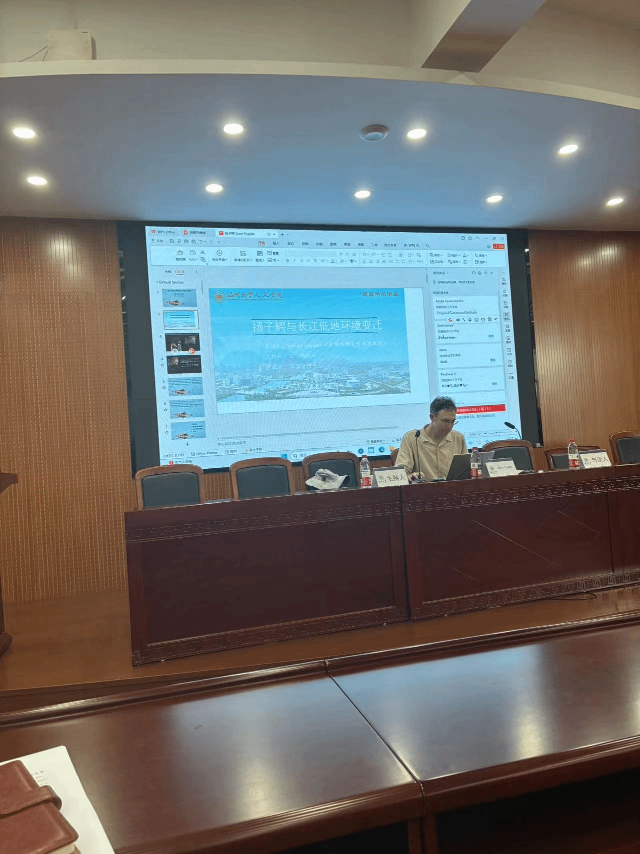 此次讲座中,兰德教授以扬子鳄这一极具生态指示意义的物种为切入点,融合文献记载、考古资料与古生态学证据,追溯淮河流域、长江中下游地区的湿地变迁,着重考察了人类在浅水区域扩张所造成的扬子鳄消失现象。兰德教授有关“去人类中心主义”以及秦汉时期江汉流域水利工程建设的论述,给予在场师生许多启发。