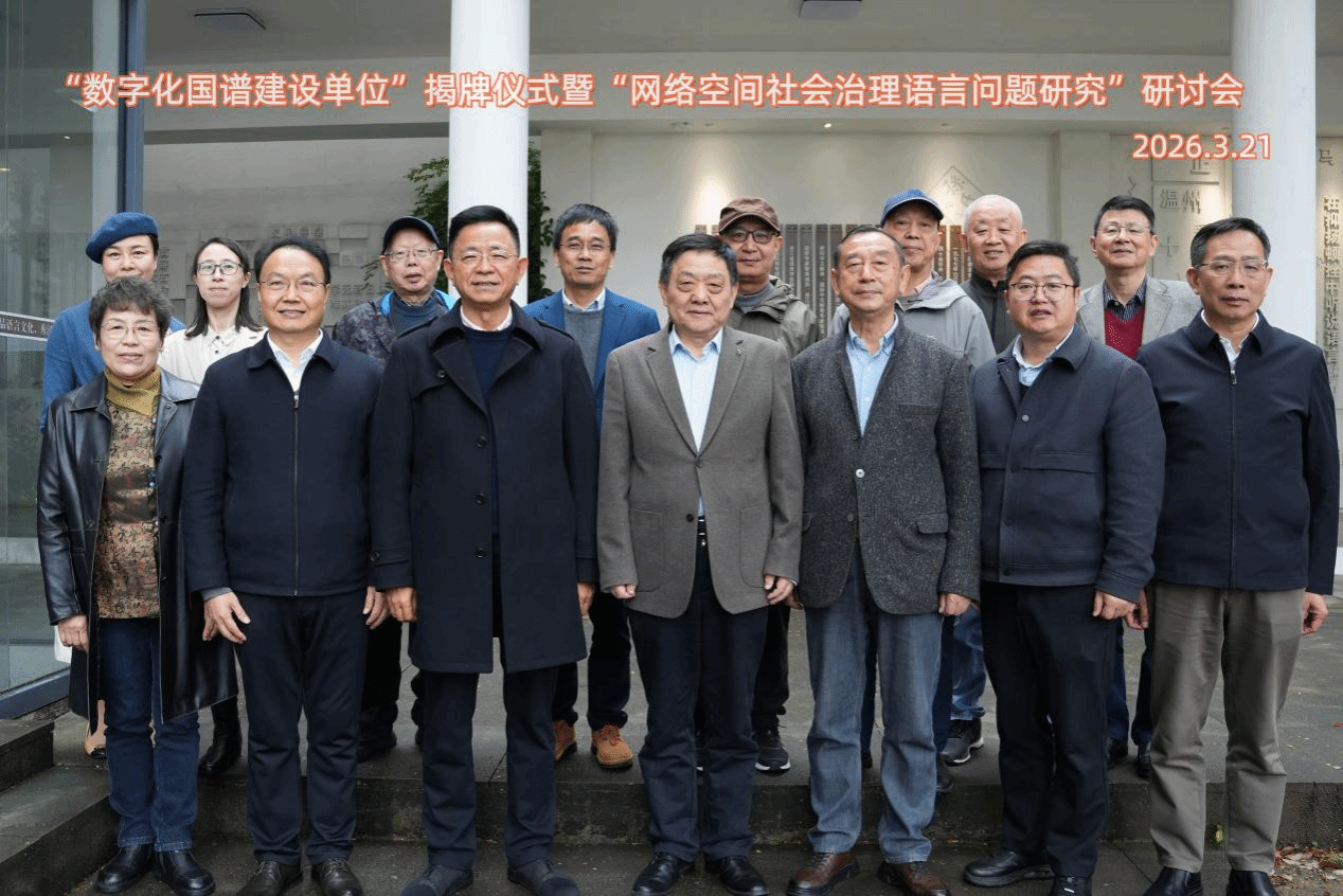 2026年3月21日上午,“数字化国谱建设单位”揭牌仪式暨国家社科基金重大项目“网络空间社会治理语言问题研究”研讨会于公司召开。9428cn太阳集团古天乐副经理陈源源主持揭牌仪式,教育部语用司原司长姚喜双教授、首都师大原副董事长、中国语言智能研究中心主任周建设教授、浙江省教育厅二级巡视员朱鸿飞、9428cn太阳集团古天乐副董事长王展光教授、9428cn太阳集团古天乐资深教授王建华、国家语言文字推广基地(9428cn太阳集团古天乐)副主任骆锤炼及相关专家出席。