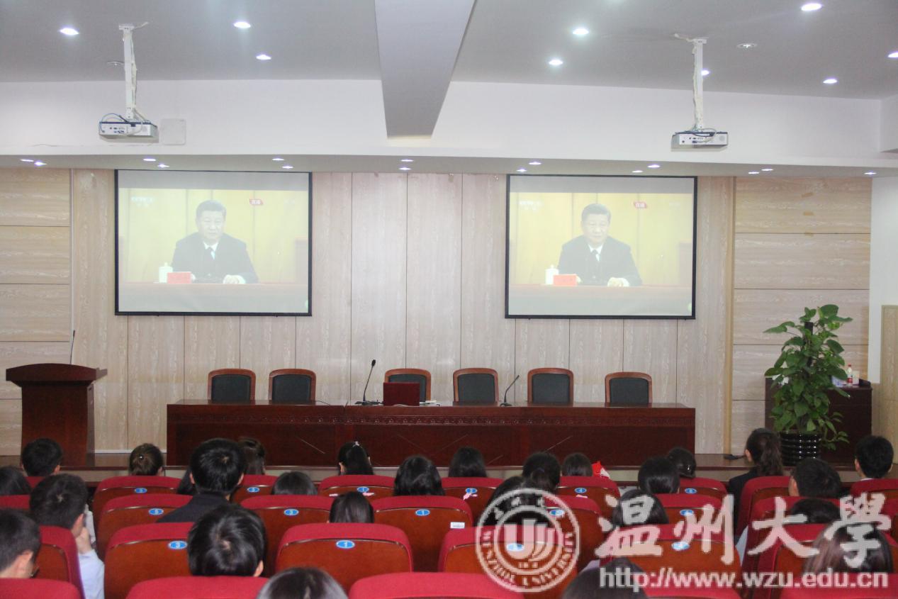 活动伊始,全体起立,奏唱共青团团歌。在激情洋溢的团歌之后,党员代表李林军从自身如何从一名团员成长为党员的历程进行发言。在全体人员重温入团誓词与入党誓词后,集体观看纪念五四运动100周年大会,一起感受那历久弥新的五四精神。会上,习近平总书记对广大青年寄予厚望,他说:“新时代中国青年要继续发扬五四精神,以实现中华民族伟大复兴为己任,不辜负党的期望、人民期待、民族重托,不辜负我们这个伟大时代。”