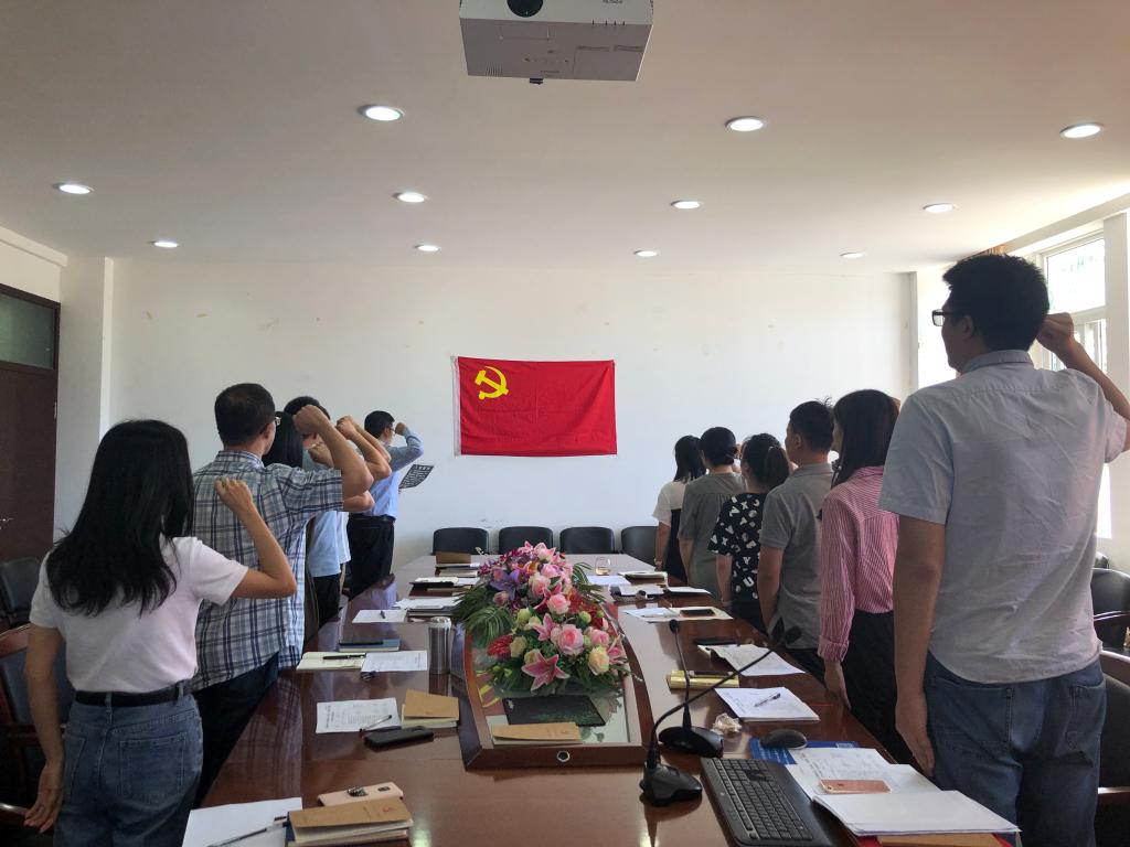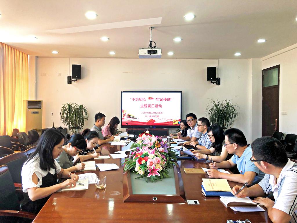 9月20日上午8:30,公司教工第五党支部在北校人文楼213会议室召开“不忘初心,牢记使命”专项学习教育之“四重四敢”主题党日活动。活动由党支部书记刘纪峰主持。