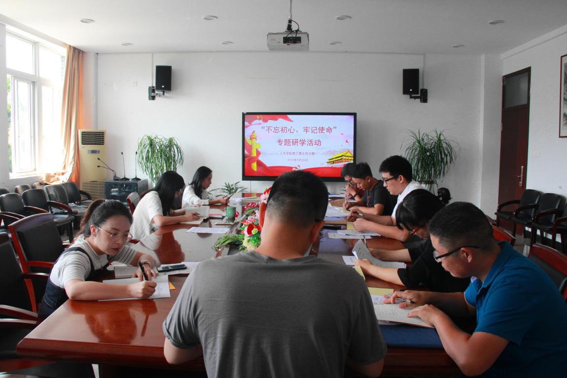9月26日上午,公司教工第五党支部在北校人文楼213会议室召开了“不忘初心、牢记使命”专题研学活动。活动由党支部书记刘纪峰主持,支部成员参加。