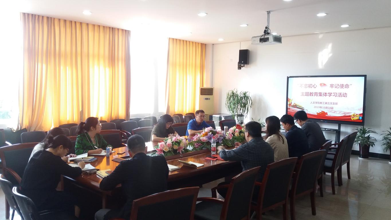 10月18日上午,公司教工第五党支部在北校人文楼213会议室开展了“守初心担使命”主题教育视频集中学习会。活动由党支部书记魏一主持,支部全体成员参加。