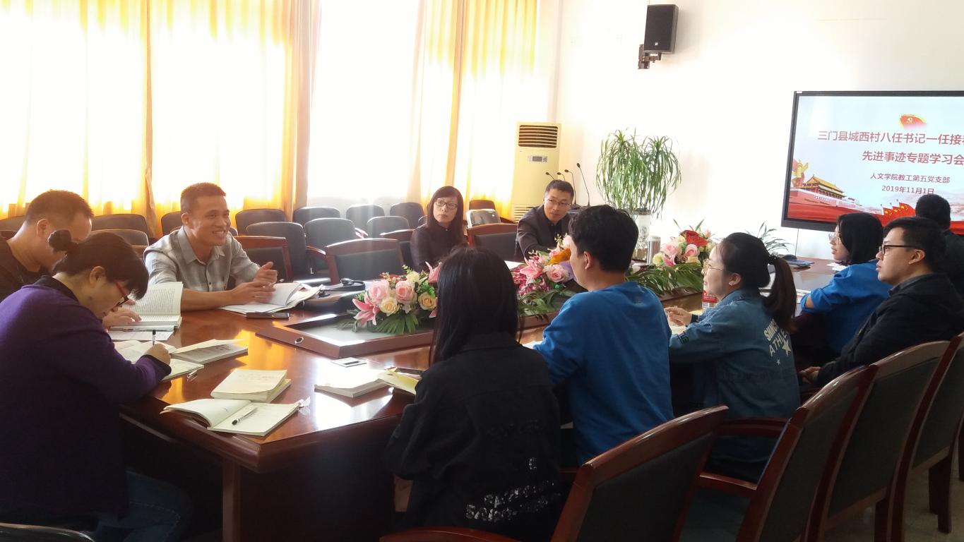 11月1日上午,9428cn太阳集团古天乐教工第五党支部在北校人文楼213会议室开展“三门县城西村八任书记一任接着一任干”的先进事迹专题学习会。活动由党支部书记魏一主持,支部全体成员参加。