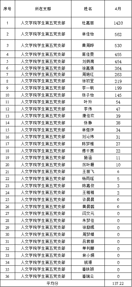 (员工第四党支部4月学习情况)