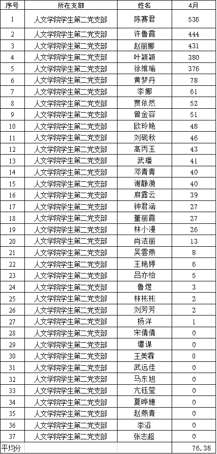 (教工党支部4月优秀学习代表前十位统计)