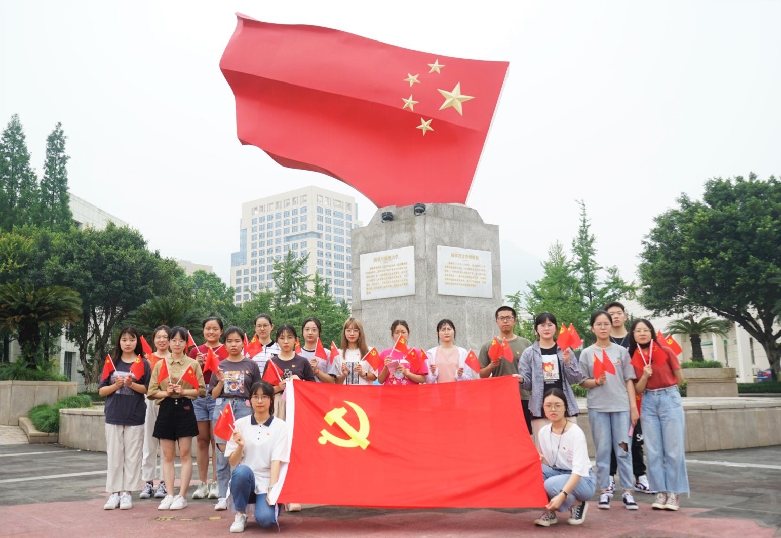 活动结束,全体党员同志在国旗广场合影留念。本次党日活动通过观看图片展览、诵读《青春》片段、重温入党誓词的形式,展现了员工党员们昂扬向上的精神面貌,共同庆祝中国共产党成立100周年。站在“两个一百年”的历史交汇点上,青年党员将不忘初心,牢记使命,充分发挥党员的先锋模范作用,为党的事业增光添彩。