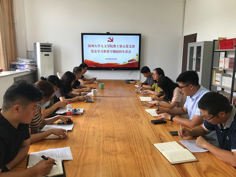 根据公司党史学习教育相关要求,围绕“学党史、悟思想、办实事、开新局”的主题,2021年8月23日上午,公司教工第五党支部在人文楼党员之家召开了党史学习教育专题组织生活会,支部党员交流学习体会,剖析自身问题,查找差距不足。