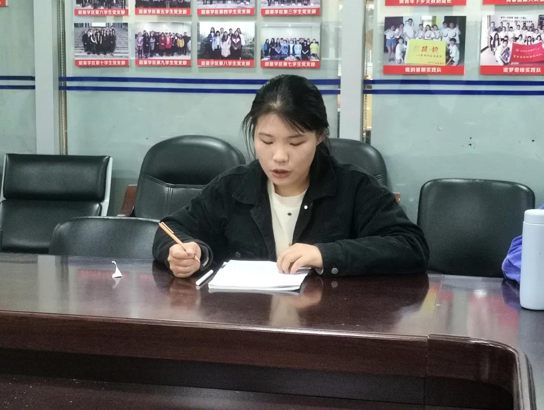 陶颖棋同志深入学习讲话中“强为民之心”“强为民之志”“强为民之能”三大要点,号召发展对象要坚持以共产党员的标准严格要求自己,坚持人民至上。