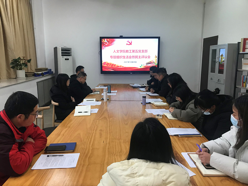 为进一步深化党史学习教育成果,发扬自我革命精神,根据学校通知要求,2021年12月28日下午,公司教工第五党支部在人文楼党员之家召开了2021年度专题组织生活会暨民主评议会。