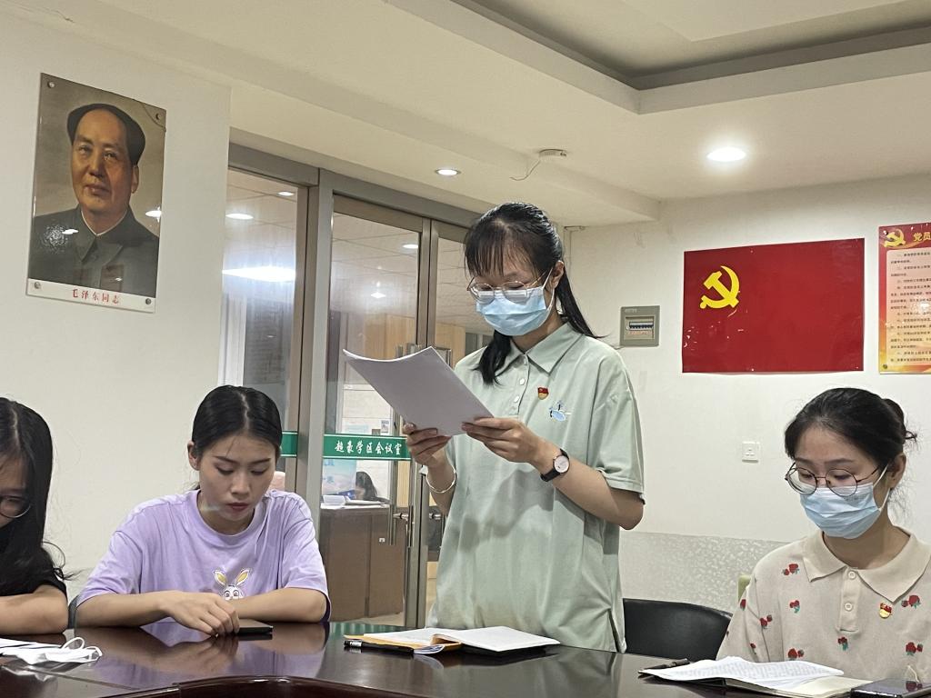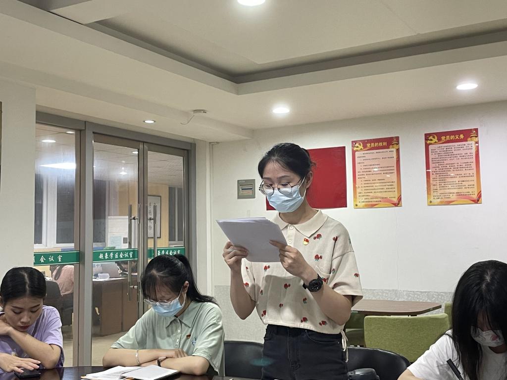 大会伊始,由支部书记宣读大会流程。随后,由刘雅晨、刘冰冰两位党员宣读《转正申请书》,分别汇报自己在过去一年中关于学习、生活、思想、实践等各个方面的表现。