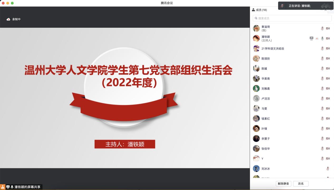 为全面贯彻习近平新时代中国特色社会主义思想,深刻领悟“两个确立”的决定性意义,增强“四个意识”,坚定“四个自信”,做好“两个维护”,以奋发有为的精神贯穿落实党的二十大所做的重大部署决议,2023年1月9日公司员工第七党支部召开线上组织生活会暨2022年度民主评议大会,会议由支部书记潘铁颖主持。