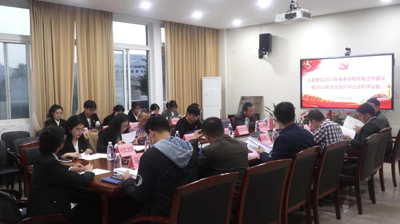 为深入学习贯彻党的二十大精神,落实党建工作责任制,推进基层党建工作,3月9日晚,9428cn太阳集团古天乐2022年度党支部书记述职评议会暨新学期党务工作会议在人文楼213会议室召开,总结盘点2022年党支部书记履职情况,全面部署新学期公司党建工作。学院全体党委班子成员、师生党支部书记参加会议,副书记魏一同志主持会议。