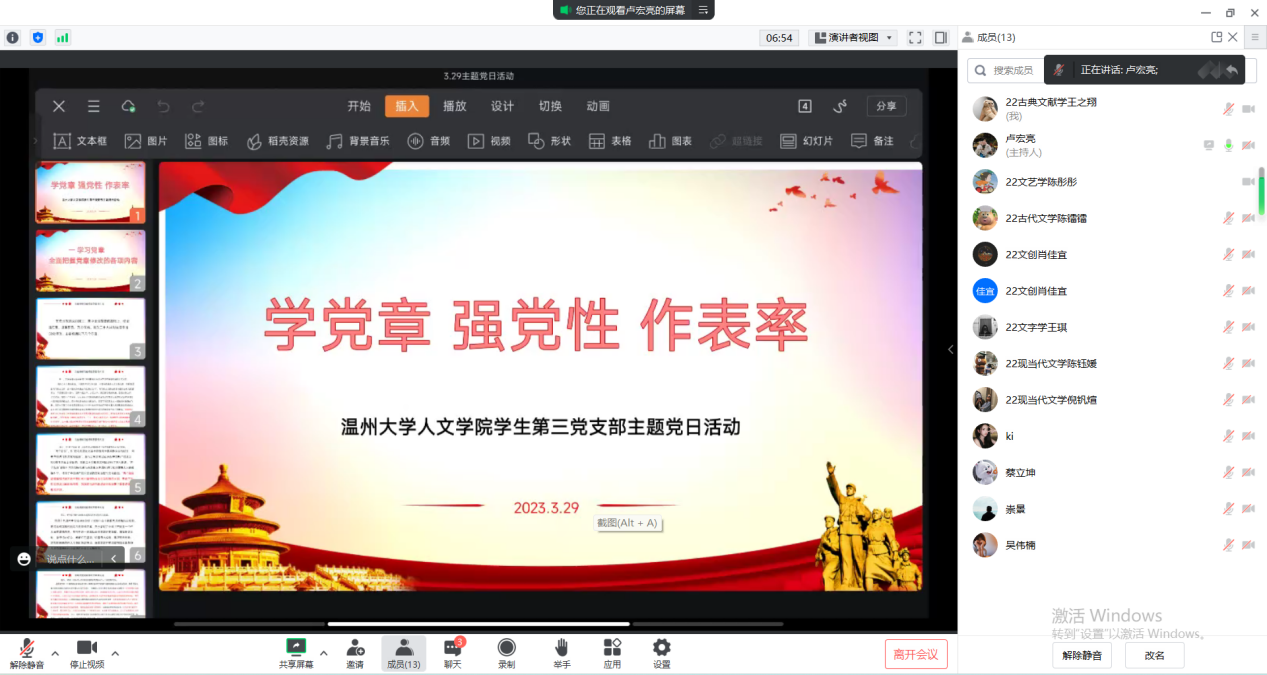 2023年3月9日16点,公司员工第三党支部于线上召开“学党章、强党性、作表率”主题党日活动。本次党日活动由支部宣传委员卢宏亮主持,共有16位党员参加。活动共分为以下三项内容。
