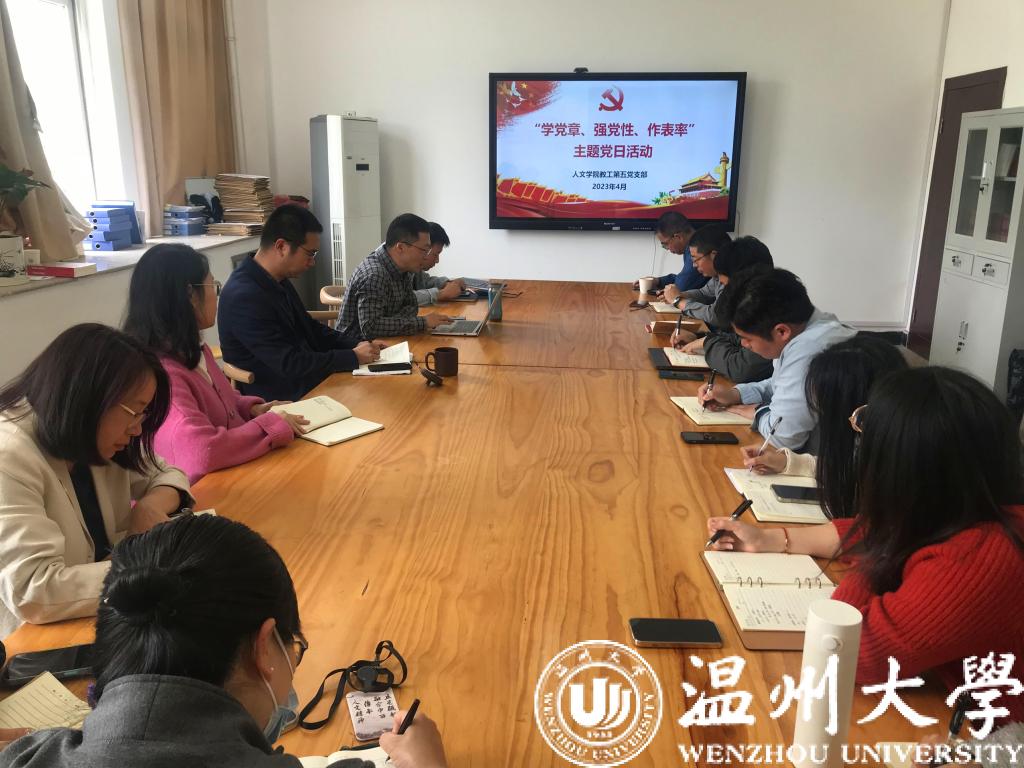 为深入学习贯彻党的二十大精神,认真领会《中国共产党章程(修正案)》的内容与要点,引导支部党员牢固树立党章意识,2023年4月11日下午,公司教工第五党支部在人文楼214党员之家开展了“学党章、强党性、作表率”主题党日活动,支部书记魏一主持。
