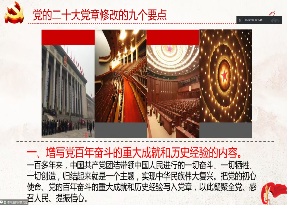 在心得分享环节,三位党员代表分享了自己的学习感悟。潘若颖同志结合自身情况,从党的理论制度创新、国家事业发展概况、党建新征程三个方面,分享了党的二十大对党章进行修改的理论与现实意义。李书凝同志从所学专业的角度,发表了对党章修改内容的见解,认为员工党员在不断提升自我修养和专业学识的同时,还要积极投身到教书育人中去,加强对中小员工“爱国主义”的教育。方雨婷同志重点分享了百年来党章的发展历程,强调员工党员要自觉学习党章,将新党章中的各项规定要求落实到行动上、体现在工作中,作为一名即将踏上社会的“新闻人”,应主动向身边的优秀党员学习,为建设新时代全媒体人才做出应有的贡献。