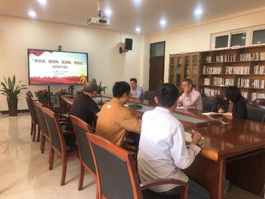 党支部书记鲍良兵同志首先带领支部全体党员同志学习了《习近平总书记考察浙江重要讲话精神》,并结合自身具体工作,对习近平总书记在考察中强调的“浙江要在建设中华民族现代文明上积极探索。要更好担负起新时代新的文化使命,赓续历史文脉,加强文化遗产保护,推动优秀传统文化创造性转化、创新性发展。坚守中华文化立场,积极发展反映时代要求、具有时代特色的新文化,发展中华文明的现代形态。弘扬伟大建党精神,广泛培育和践行社会主义核心价值观,发展社会主义先进文化。繁荣发展文化事业和文化产业,持续推进城乡公共文化服务标准化、均等化,加强公民道德建设,推进书香社会建设。运用杭州亚运会亚残运会、世界互联网大会等窗口加强文化交流传播,不断提升中国文化感染力和中华文明影响力”进行了解读。