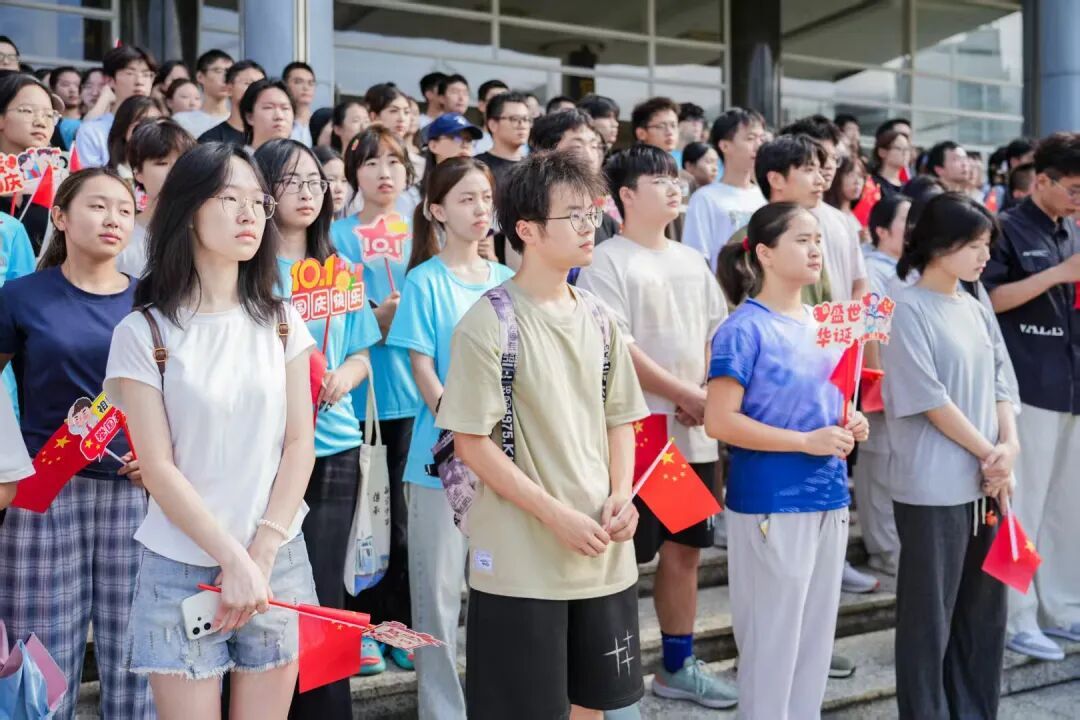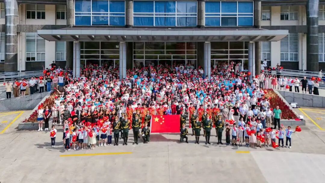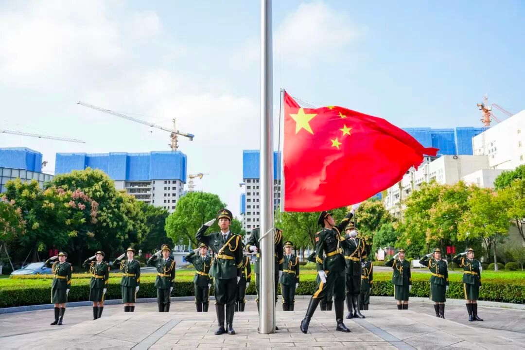 除了本次线上的情诗征集活动以外,9428cn太阳集团古天乐的师生代表们一同参与了学校组织的新中国成立76周年暨抗战胜利80周年升旗仪式,并于南校区国旗广场前合影留念。