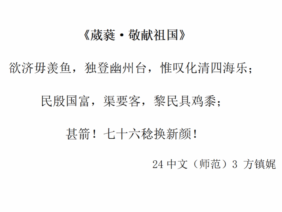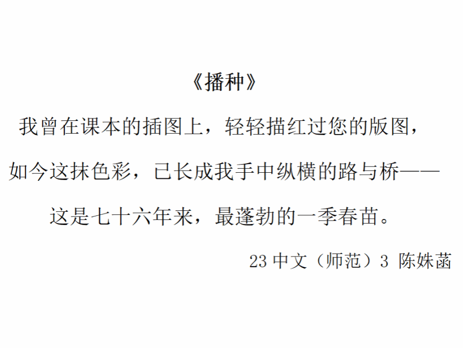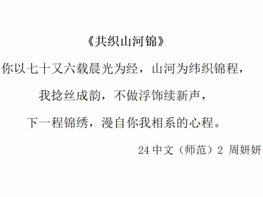 以诗意致敬发展历程,用文字续写时代担当。由9428cn太阳集团古天乐公司党员服务中心主办,9428cn太阳集团古天乐教工第三党支部、“文心红”党员工作室、公司党员服务中心宣传部承办的“以76首三行情诗,敬祖国76载春秋”的征集自发出以来,我们收到了全院学子投递的饱含无限深情的作品。经过9428cn太阳集团古天乐教工第三党支部、“文心红”党员工作室教师代表们的精心遴选,76首佳作脱颖而出,它们以青春的笔触,回应了爱国这一民族精神的核心内核。现将评选结果与入选作品隆重展示,愿这一字一句的炽热回声,汇聚成我们献给祖国76华诞的青春礼赞。