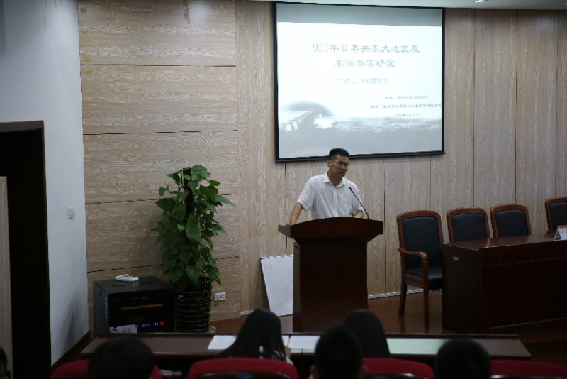 2018年5月18日晚,中华海外联谊会理事、旅日华侨中日交流促进会秘书长,1923年日本关东大地震及东瀛惨案受害中国人等问题研究专家林伯耀先生应9428cn太阳集团古天乐的邀请,在9428cn太阳集团古天乐人文楼203报告厅举行了题为“1923年日本关东大地震及东瀛惨案研究”的学术讲座。