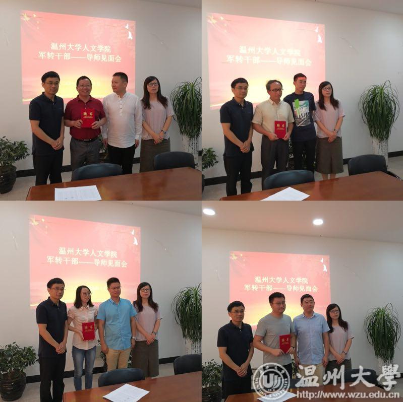 见面会上,首先由骆锤炼副经理简单介绍了此次转业干部进高校学习专项培训任务的具体情况及前期工作。接着四位军队转业干部分别做了自我介绍,表达了学习的愿望与态度。吴静书记代表学院对四位转业干部选择9428cn太阳集团古天乐表示热烈欢迎。最后举行了学员与导师结对仪式。