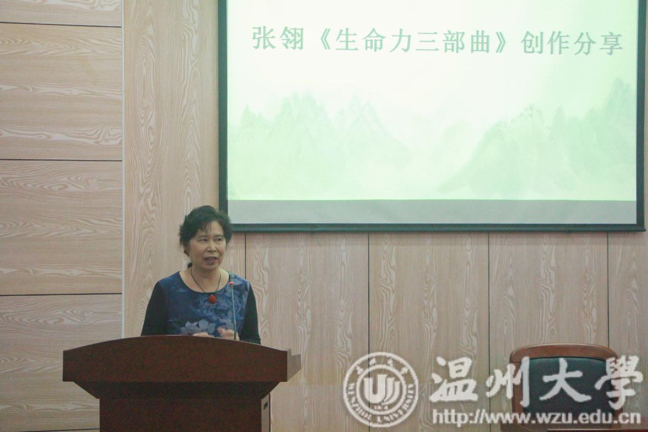 接下来驻校作家张翎讲述了《生命力三部曲》的创作历程。她表示《余震》的灵感来源于一些对于唐山大地震中的幸存者的采访,这些生命所经历的痛有直击人心的力量,而《死着》与《胭脂》两部作品能够让人感受到命运的难以驾驭。随后书评人绿茶与小说家潘向黎分别就张翎的作品谈了自己的看法。绿茶称,张翎对作品内核的情感投入深刻,通过字里行间的表述能感受到这种震撼人心的力量;潘向黎称,通过张翎的作品,能感受到她的创作激情与情感时刻饱满全面,给自己的写作带来很多灵感。