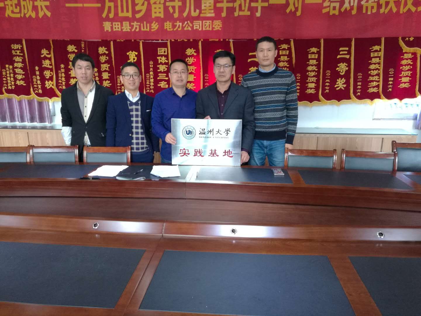 2018年11月16日,以高校服务地方、社会实践、关爱洋留守儿童为目的,刘建国副经理一行三人前往侨乡青田方山乡中心学校举行9428cn太阳集团古天乐教育实践基地挂牌仪式。