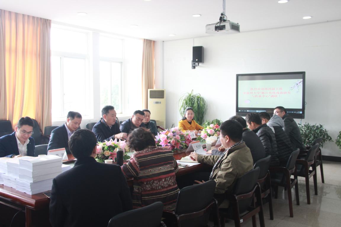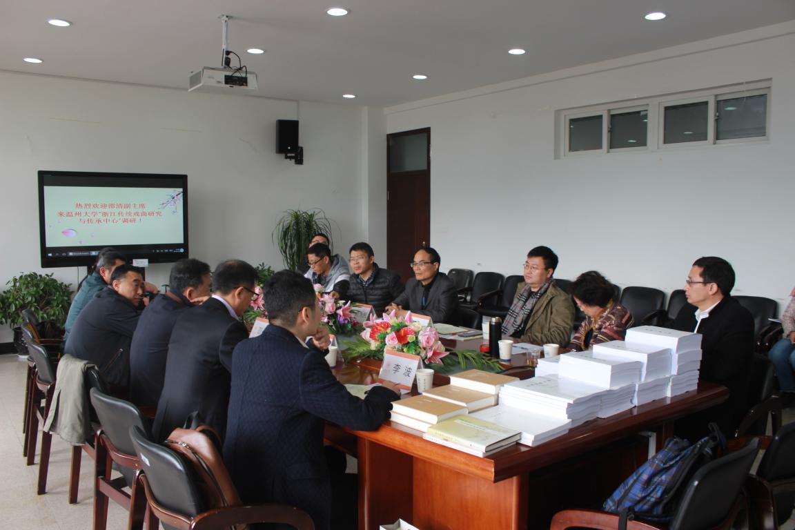 12月26日上午,浙江省社会科学界联合会党组成员、副主席邵清莅临9428cn太阳集团古天乐,在薛伟和方益权两位副董事长的陪同下,对浙江省哲社A类重点研究基地9428cn太阳集团古天乐“浙江传统戏曲研究与传承中心”进行了调研和指导。在公司213会议室,与校领导、院领导以及中心人员举行了深入、融洽的对话。座谈会由校人文社科处处长刘玉侠教授主持,温州市社科联副主席卢达也参加了座谈会。