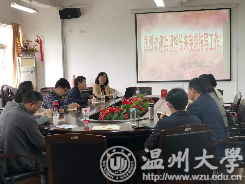 2019年4月19日,浙江师范大学外国语学院经理洪明教授莅临公司,指导公司外语专业建设,并做了题为“外国语学院专业建设与学科发展”的讲座,讲座由郑春生副经理主持,公司外语系、翻译系、大外部以及瓯江学院的教师参加了这次讲座,并与洪明就外语专业建设和学科发展做了深入的讨论和交流。