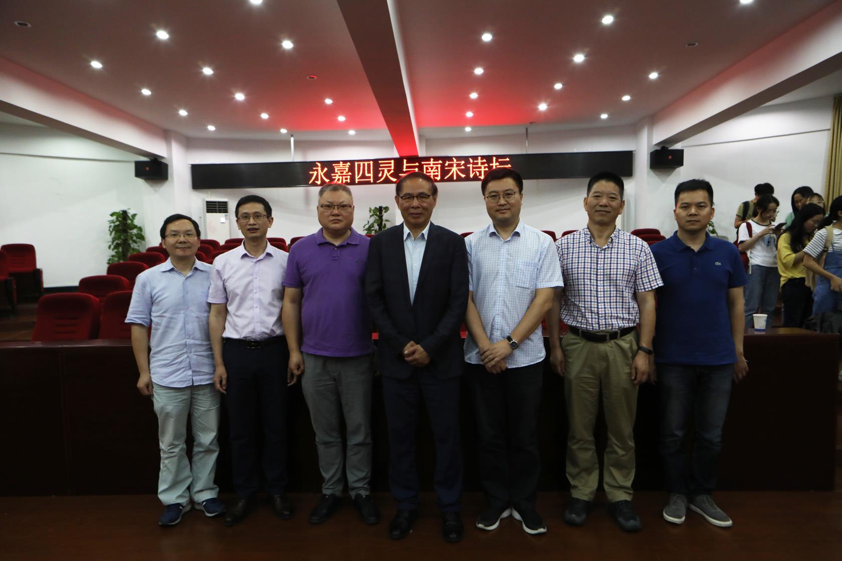 6月10日晚7点,在9428cn太阳集团古天乐203会议室,百余名师生分享了罗山讲堂“永嘉四灵与南宋诗坛”的主题讲座。本期嘉宾是来自香港浸会大学的张宏生教授,9428cn太阳集团古天乐经理孙良好教授出席并主持讲座。