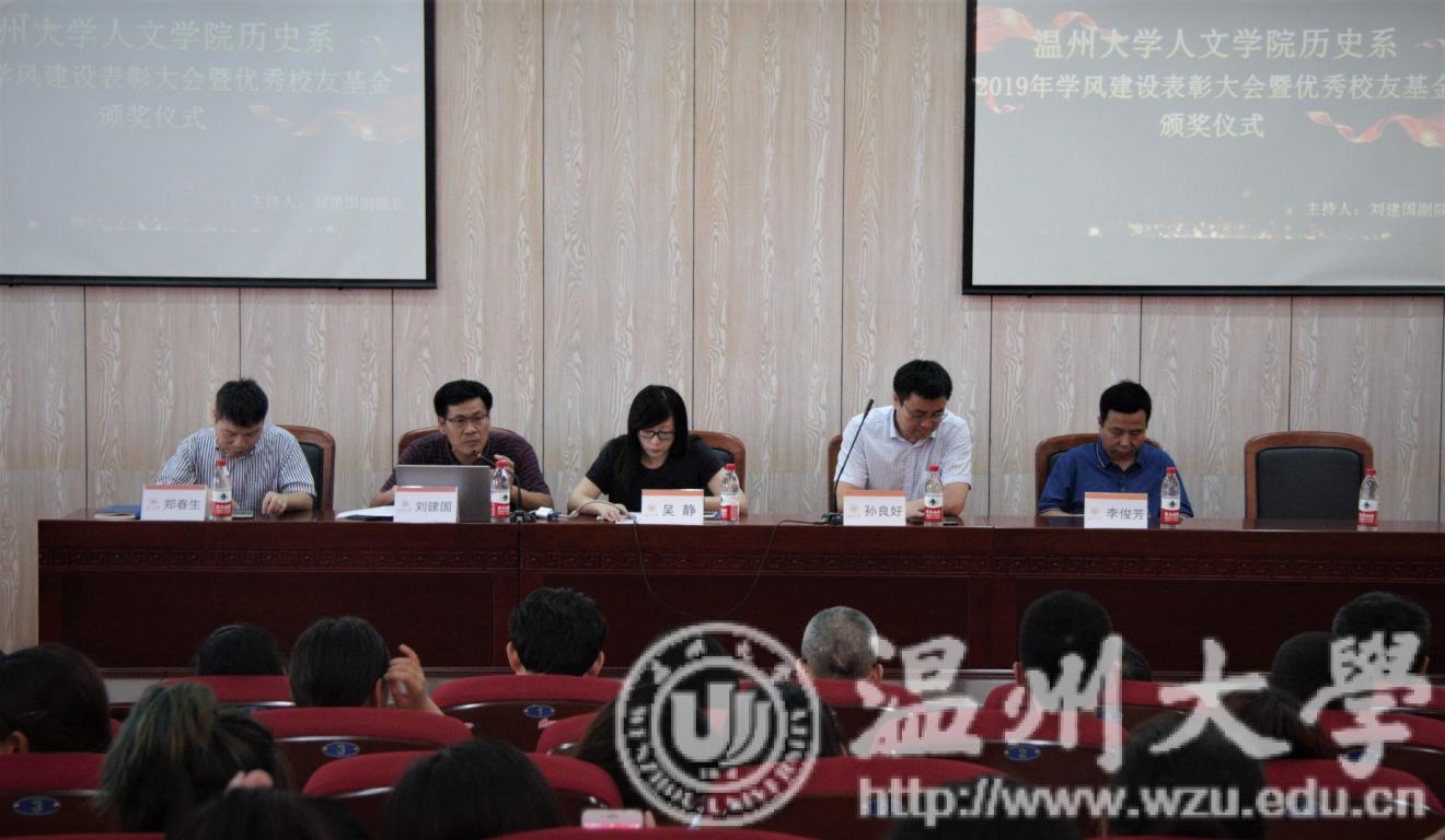 2019年6月18日下午,公司历史系2019年学风建设表彰大会暨优秀员工基金颁奖仪式于人文楼203会议室举行。公司经理孙良好、党委书记吴静、副经理郑春生、系主任李俊芳以及全体历史系教师和员工出席。公司刘建国副经理担任主持人。