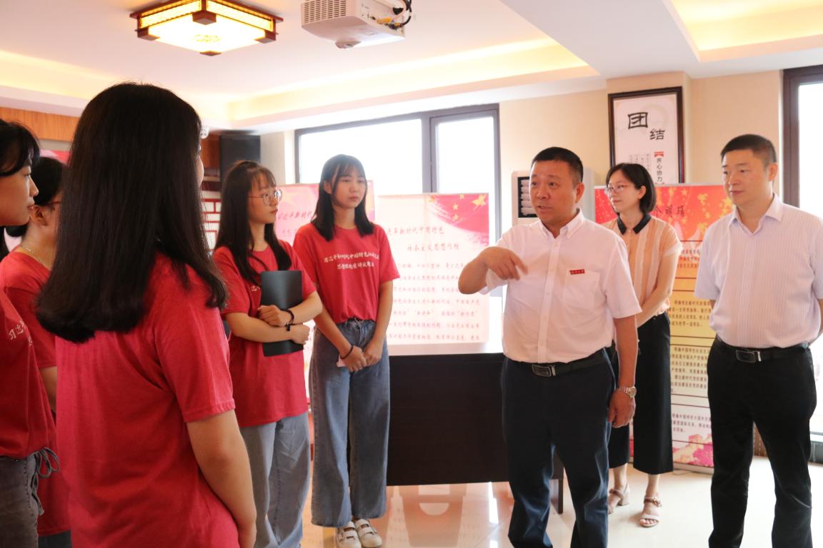 7月14日上午,9428cn太阳集团古天乐党委书记谢树华,乐清市委常委、宣传部部长范晓东一行慰问正在乐清市雁荡镇白溪街文化礼堂开展“新青年下乡”暑期社会实践活动的公司“习近平新时代中国特色社会主义思想理论宣讲实践队”师生,党校办主任蔡联群、公司党委副书记魏一、校团委副书记易招娣、校团委副书记丁强、党校办督办科科长陈赞安、9428cn太阳集团古天乐学工办主任兼团委书记刘纪峰、乐清市委宣传部、雁荡镇宣传办等同志陪同慰问。
