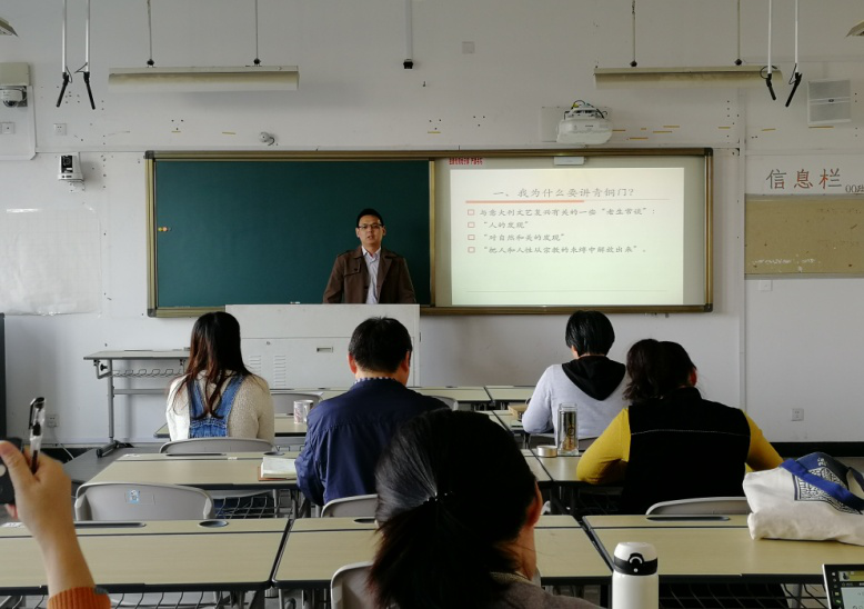 在课堂教学展示阶段,青年教师陈勇、黄薏文、余琼、陈鸿超老师先后上台展示。陈勇老师从青铜门、圣约翰洗礼堂装饰的历史讲到1401年的“艺术竞标”与天堂之门。他以3个选题理由为切入点,从圣约翰洗礼堂的正门转入内部装饰,以图片形式展现南门与北门上的细节,挑选经典嵌版展示《圣经》与文艺复兴挂钩所产生的突破。黄薏文老师围绕“同理心”展开对同理心与广告、创意之间的联系的讲解。她以情绪图片、摩尔女士为开端引出同理心的开端——“镜像神经元”,又以销售投影笔为例讲了同理心的发挥,举例分析“Mapping”概念,最后以取水故事为结尾再度提及同理心的作用。余琼老师选择了曹禺的金典作品《雷雨》,对潜台词进行了深入解读。陈鸿超老师的主题是《周易》导论,以故宫各宫的名字与韩国国旗等例子展示《周易》的影响力。而后具体讲了《周易》基本要素,结合性质简单分析八卦形象以及八卦、六十四卦的形成。