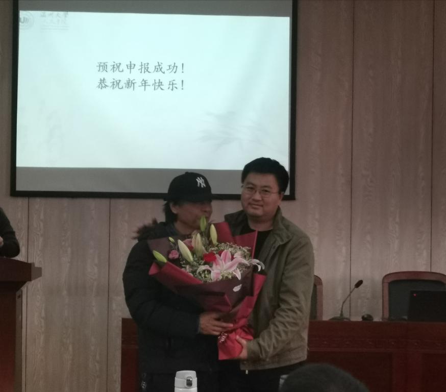 最后,学院工会还为今年退休的马福成老师献花,感谢他多年来为学院做出的积极贡献,同时也预祝他拥有轻松愉快的退休生活。