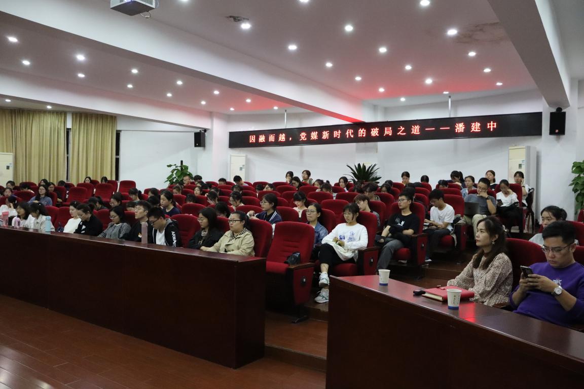 10月20日晚,《温州日报》报业集团总编辑、浙江省宣传文化系统“五个一批”人才潘建中先生特来公司为同学们开展了《因融而越,党媒新时代的破局之道》主题讲座。本次讲座在人文楼203学术报告厅举行,由经理孙良好老师主持,参加讲座的有20级新闻与传播专业研究生以及广告学和创意中文专业的本科生。