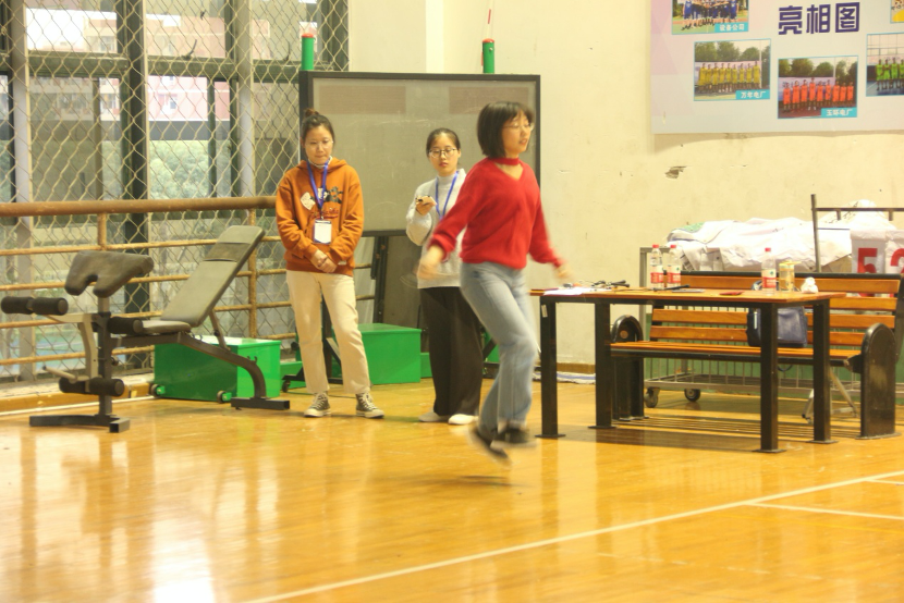 下午2点,公司研究生会各部门积极准备,携带活动器材前往北校区篮球馆布置场地,活动在下午3: 30正式开始。本次趣味运动会共有7个项目,其中个人项目5个,分别为踢毽子、跳绳竞速、圈牛、打保龄球和定点投篮;团体项目2个,分别为托球跑和呼啦圈传递。在趣味运动会进行期间,赛场内充满了欢快、轻松的氛围。个人项目虽然简单易懂,但游戏性与趣味性十足,吸引了大批忠实“粉丝”。团体项目规则稍微复杂一点,但在增进友谊的同时也十分考验参赛者的默契配合,因此也吸引了很多老师前来参赛。