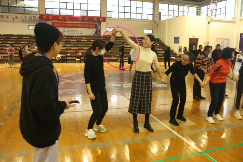 2020年11月25日下午3点30分,由公司工会举办的9428cn太阳集团古天乐2020年教职工趣味运动会于北校区篮球馆顺利举行。本次运动会意在丰富学院教职工的业余生活,加强学科教研室间的交流,强调以趣味为主,竞技为辅。为此工作人员设计了多项具有趣味的轻竞技性运动。
