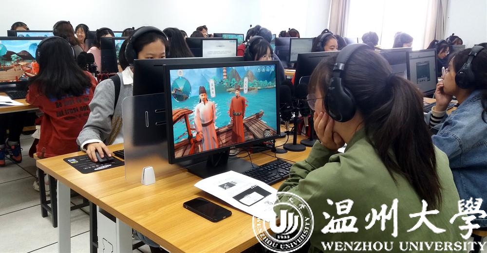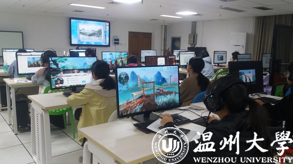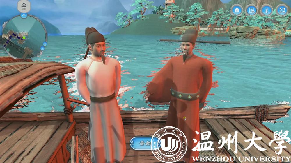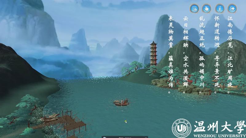 今年11月,《山水诗之意境体验虚拟仿真实验教学项目》被正式认定为国家级虚拟仿真实验教学一流课程,是全国首批文学类的虚拟仿真实验教学项目,也是浙江省唯一的文学类虚拟仿真实验教学课程。2017年9月,该项目正式在温大9428cn太阳集团古天乐上线试课,创新教学模式,深受员工欢迎。温州作为山水诗发源地,研发团队将此作为教学项目主题,员工可选取山水诗鼻祖谢灵运、山水诗代表诗人孟浩然、文天祥等文人作为虚拟仿真实验中的特定角色,以江心屿作为特色地标。在技术渲染的手段下,员工可以在充满意境的虚拟仿真环境中沉浸式地学习古典诗词,真正达到在自主学习过程中掌握系统化知识的目的。